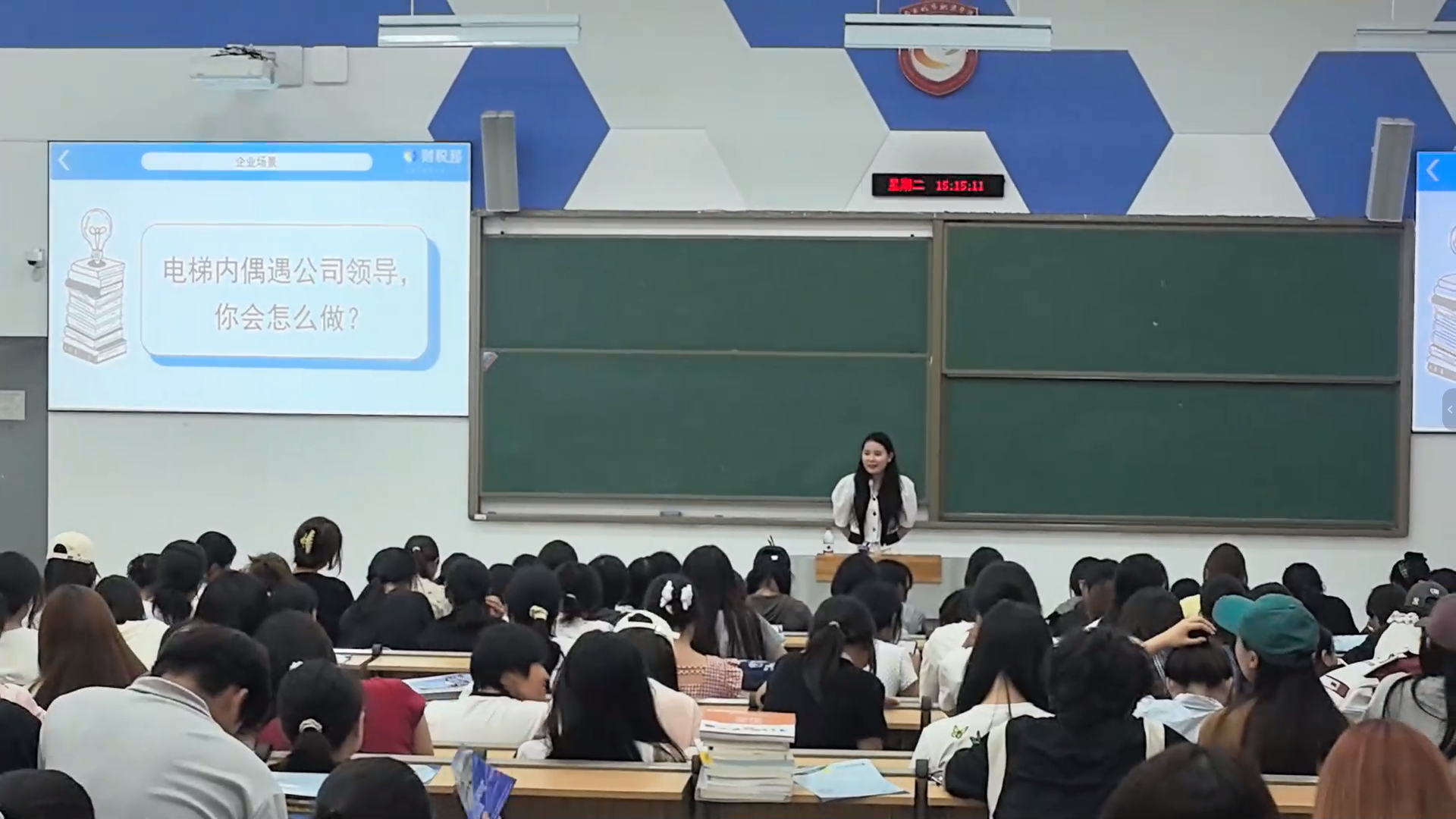 本次入学教育特别邀请了校企合作企业代表及校友进行分享环节。毕业于本校、现就职于江苏财税邦会计有限公司的徐晓艺学姐,以“会计星河、筑梦指南”为主题,带来了真挚动人的分享。她结合自身从校园学习到职场拼搏的成长轨迹,生动描绘了现代财务公司的岗位设置与职业发展图景,强调了持续学习与积累的重要性。她深情寄语学弟学妹:“机会永远‘留’给有准备的人”,并鼓励大家“相信自己、勇于突破,成为勇敢且坚定的人”,因为“你的未来由现在书写”。现场,她还邀请新生上台进行一分钟个人分享,互动热烈,极大地激发了新生的专业认同感和奋斗热情。